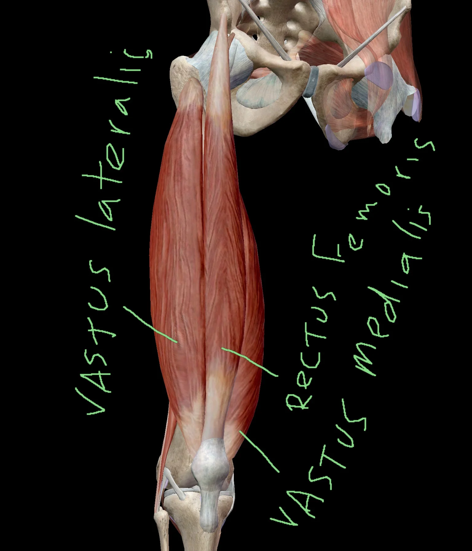 So? These four muscles make up the quadriceps femoris. They all attach to your patella (knee cap) via your quadriceps tendon, and continue down to your tibia via the patellar ligament (tendon?). The patella gives the quadriceps muscles a major mechanical advantage by increasing their leverage, which basically allows the quads to do approximately 30% more work with the same effort. However, all of those forces created when extending (straightening) your knee are directed into the patellofemoral joint surfaces - where the patella and femur (thigh bone) meet. With overuse, this joint breaks down and/or can cause osteoarthritis. To help slow the breakdown of cartilage in your knee, don’t forget to use your glutes when doing things like going up/down stairs and anytime you sit down, stand up or squat. The more your glutes help out, the less your quads have to work. The less your quads work, the happier your knee joint will be.